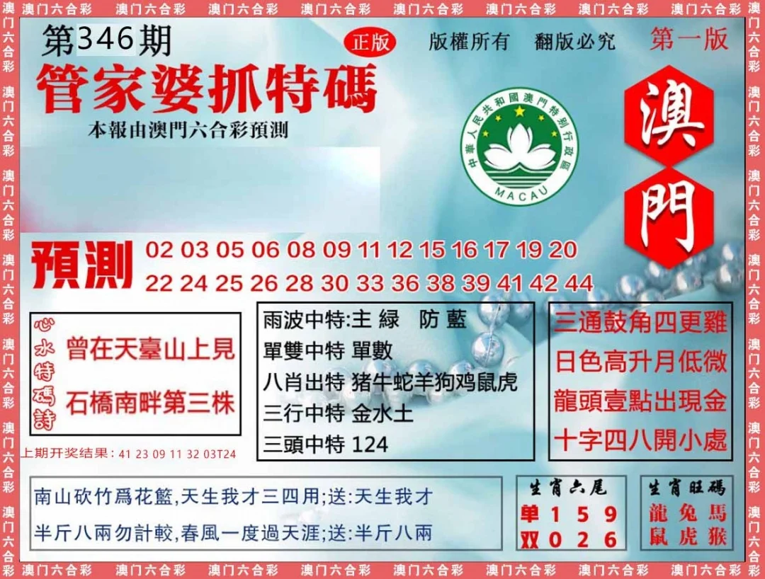 341期;重点⑿码:06.18.22.46.08.20.04.28.35.47.05.17 |